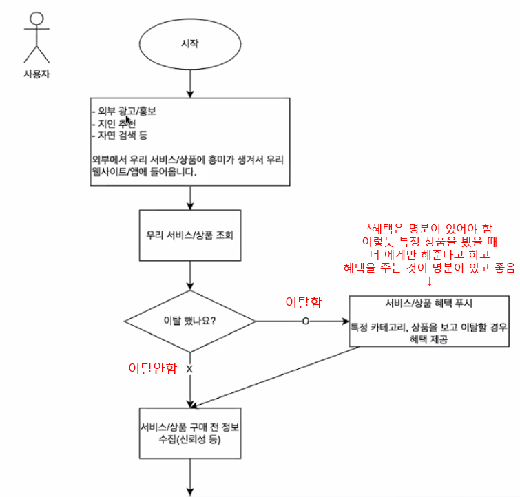 혜택 제공 : 명분이 있어야 함. 특정 상품을 봤을 때 너에게만 해준다고 하고 혜택을 주는 것이 명분이 있고 좋음.