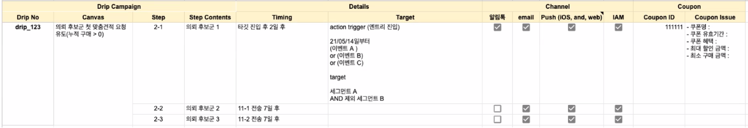 보통 UI/UX 디자이너 또는 PO 에게는 이미 이러한 사용자 여정 지도가 이미 있을 것. 이걸 기반으로 세그멘테이션을 하고 캠페인 계획을 세우면 좋다.