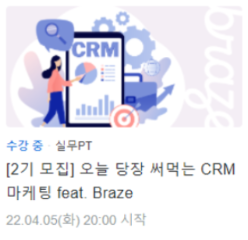 지금도 여태까지 퍼포먼스 마케팅만 알았던 나에게 CRM 이라는 고객관점 데이터의 활용 & 풀퍼널 마케팅으로 시야를 넓혀준 이 강의가 정말 고맙다. 하지만 실무 중심의 강의는 실제로 적용을 할 수 있을 때 가장 빛이 나는 법이니 이 후기를 보시는 분이라면 실제로 회사에서 적용할 수 있는 상황일 때 이 수업을 들으면 훨씬 좋을 것 같다.