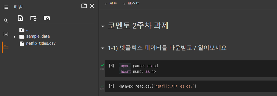그런데 그 때 당시에는 영어도 엄청 기초정도밖에 못했고, 데이터도 어떻게 써야할지 몰라서 (매번 아나콘다 깔고, 어쩌구 하느라 접근성이 좋지 않았음) 못 사용 했는데 이번에 처음으로 캐글에서 데이터를 받아서 Colab 으로 가공하면서 과제를 했다.