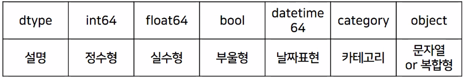 - 결측치 : 누락된 값, 비어있는 값 (이후 함수 적용이 불가하여 결과값에 영향을 미칠 수 있음)