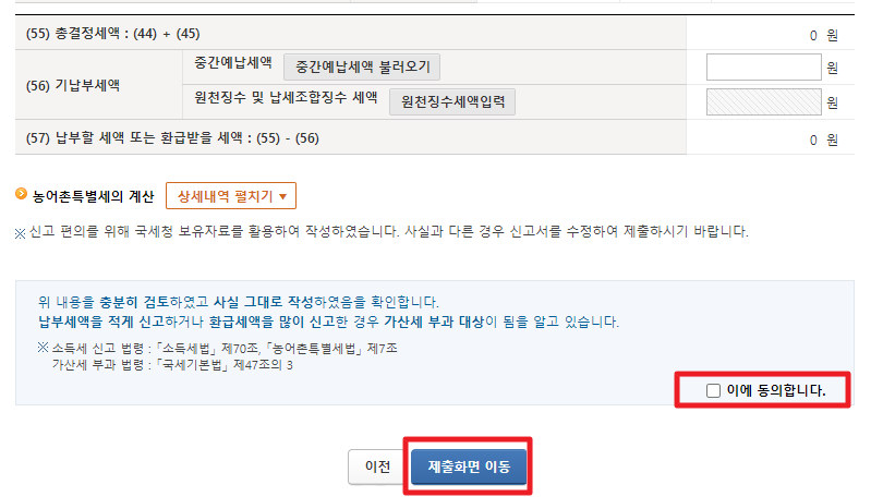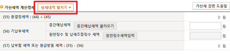5. 위 내용 쭉쭉 확인해 주고 '가산세액 계산 명세' 부분으로 내려오기 > 상세내역펼치기