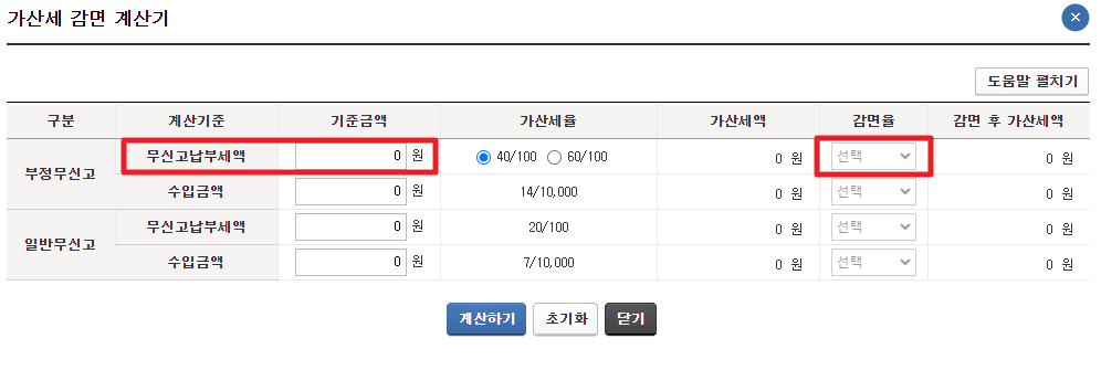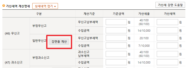6. 계산서를 활용해서 50% 가산세 감면 적용 금액 확인