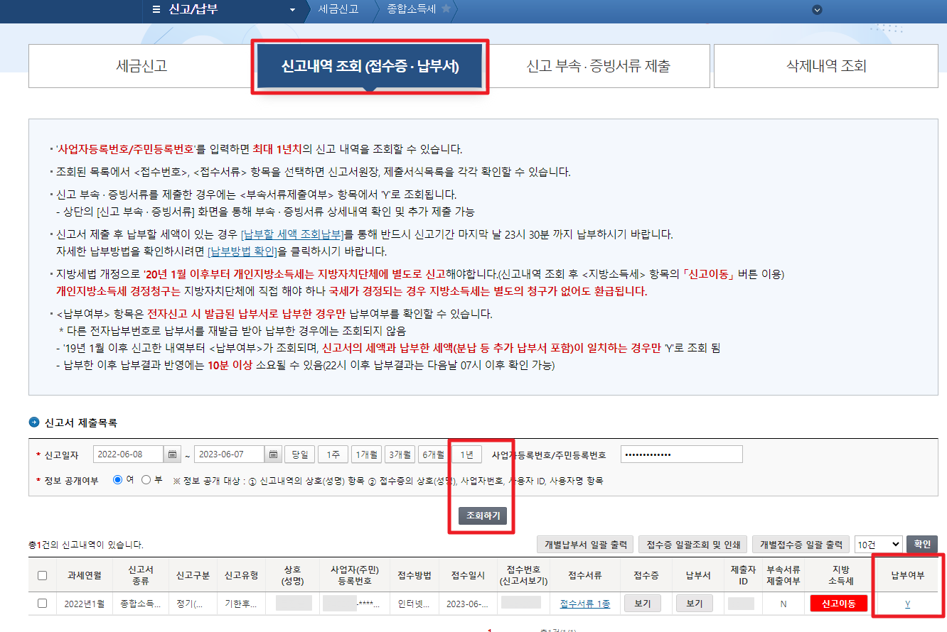 9. 완료 내역 신고내역 조회 가서 확인 & 계좌로 납부