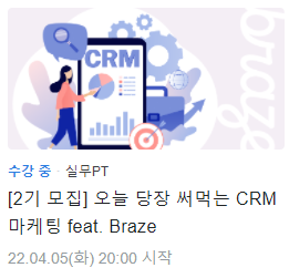 하지만 솔루션 계약을 하게되면 약 2주 뒤에 CSM(Customer Success Manager)가 붙게 되고 그 사이에 어떻게 Braze를 활용하여 CRM 마케팅을 할 예정인지를 준비해 놓아야 하기 때문에 이 수업을 하면서 준비를 하면 되겠다 생각이 들었다.