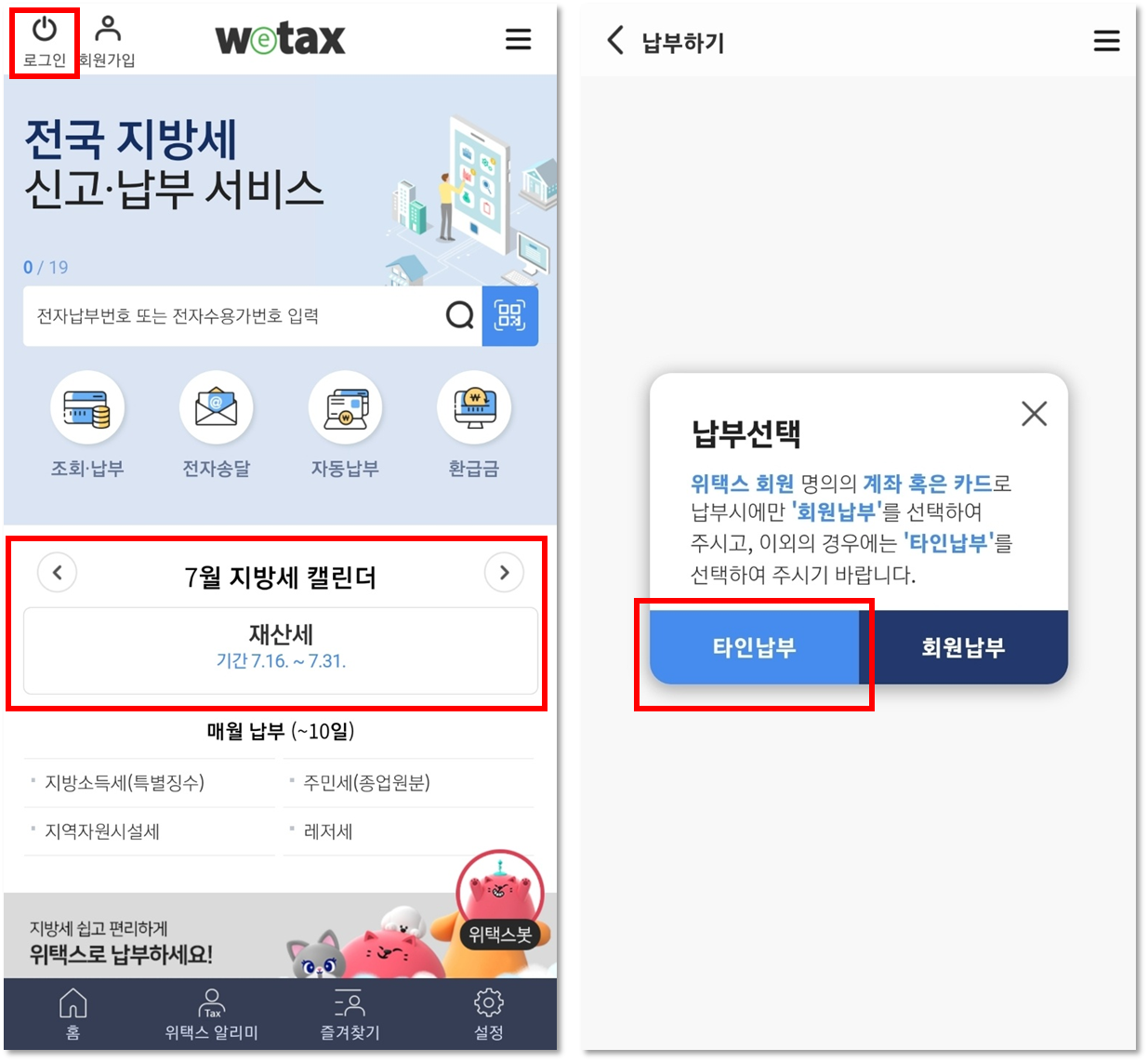 | 매해 7월 16일 ~ 7월 30일 | 재산세 (건축물, 주택, 선박, 항공기) |